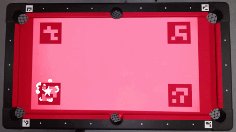为了校正拍摄画面,Wighton 给球桌的四个角贴上了一个基准点贴纸(类似于二维码三个角上的小方块)。这些贴纸不仅可以帮助计算机程序校正画面,还可以作为球洞、球等关键位置的参考。