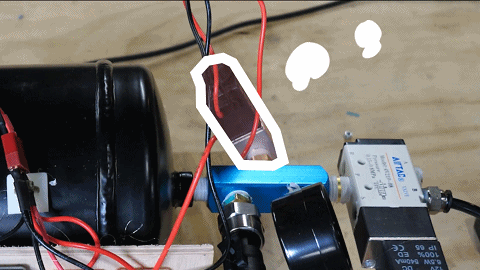 最后的击球动作通过一个气缸来完成。由于台球对击球的力度控制有要求(并非力度越大越好,比如有时候动作需要非常轻,避免白球落洞),Wighton 还给这个气缸安装了一个控制装置,可以通过放气阀等装置控制气流,从而达到控制击球力度的目的。