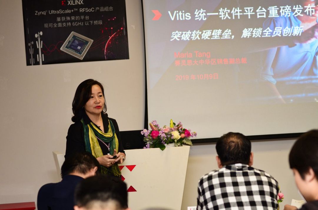 在沟通会上,赛灵思公司大中华区销售副总裁唐晓蕾、赛灵思软件和人工智能高级经理罗霖对新款 Vitis 统一软件平台进行陈述,并且提到,这一软件不限于使用专有开发环境,插入到通用的软件开发中,并利用丰富的优化过的开源库,使开发者能够专注于算法的开发。