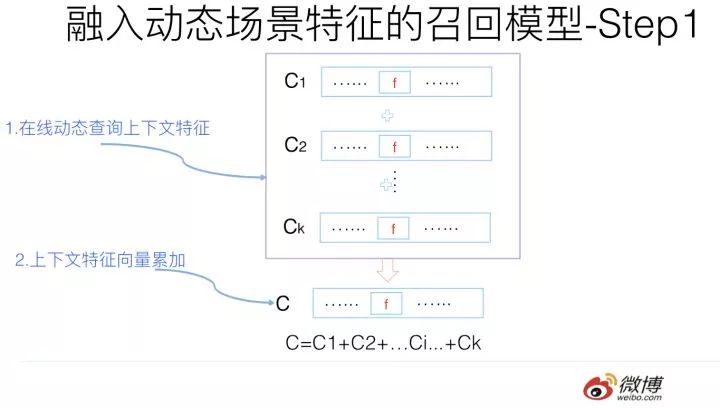 首先,由于上下文特征的动态性,所以给定用户UID后,可以在线查询某个上下文特征对应的embedding向量,然后所有上下文向量求和得到综合的上下文向量C。这个过程其实和U及I的累加过程是一样的,区别无非是上下文特征需要在线实时计算。而一般而言,场景上下文特征数都不多,所以在线计算,速度方面应可接受。