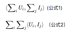 我们来分析一下。这种做法其实是在做用户特征集合U和物品特征集合I之间两两特征组合,是符合FM的特征组合原则的,考虑下列公式是否等价就可以明白了:
