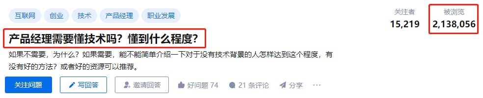 最近在知乎看到一个关于“产品经理需不需要懂技术”的话题,点击进去发现,这个话题的浏览人数居然高达200W+。