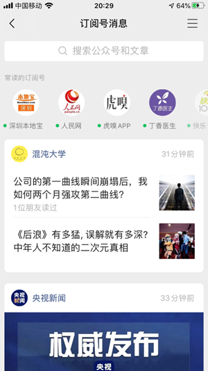 微信的某些用户提出:“我希望有些订阅号消息能从订阅号节点里拿出来,直接在首页里就可以查看。”