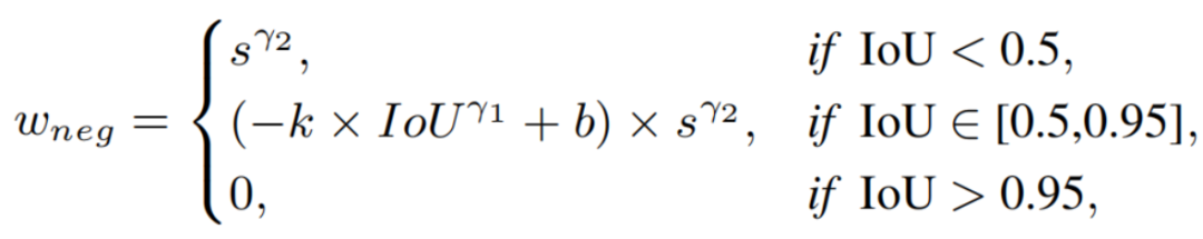 在本文中解耦这个过程,并分别为每个Anchor分配pos和负样本损失权重。大多数Soft Label Assignment方法都会为损失分配权重。有一种特殊的情况下,权重被分配给分数,它可以表述为。