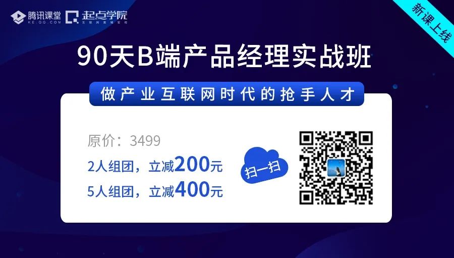 在合作伙伴腾讯课堂的帮助下,经过最近8个月的深度教研和打磨,人人都是产品经理与起点学院联合研发,一门B端产品体系课——《90天B端产品经理实战班》课程正式发布上线。