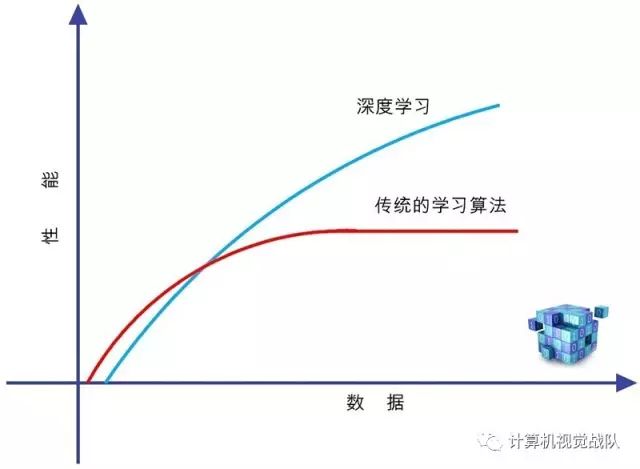 但如果训练数据比较少,深度学习的性能并不见得就比传统机器学习好。其潜在的原因在于,作为复杂系统代表的深度学习算法,只有数据量足够多,才能通过训练,在深度神经网络中,“恰如其分”地将把蕴含于数据之中的复杂模式表征出来。