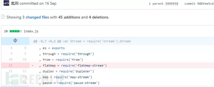 9月16日,@right9ctrl删除了对flatmap-stream的引用并在event-stram中手动引用了这个方法,且将项目从3.3.6 升级到了 4.0.0。