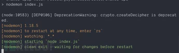通常来说,类似这样的弃用警告也算常见,看起来没什么异常。这里的警告,初看上去与nodemon项目无关,只是依赖项问题,程序内部会自行解决处理,一般开发人员也会无视地忽略掉。但另外一方面来讲,正常情况下nodemon项目是不需要进行加密解密的,这就有点匪夷所思了。