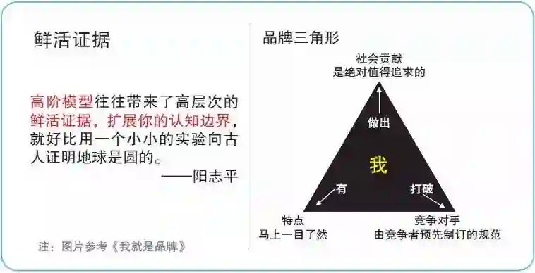 这些高阶的模型往往会带来高层次的鲜活证据,来扩展你的认知边界。就好像用一个很小的实验,就可以向古人证明地球是圆的、证明重力的存在是一样的。