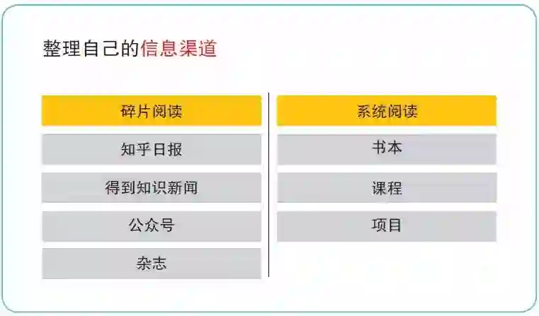 其他的内容如书上的片段,路上看到的标语,杂志上看到的一段话、一张图片,这些都是信息,如果跟我们当前关注的内容相关,就可以把它们收集起来。
