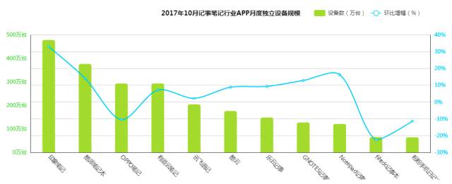 艾瑞咨询最新监测数据显示,2017年10月主要记事笔记类APP月活跃用户数方面,印象笔记排名第一,月活跃用户数达478万人;