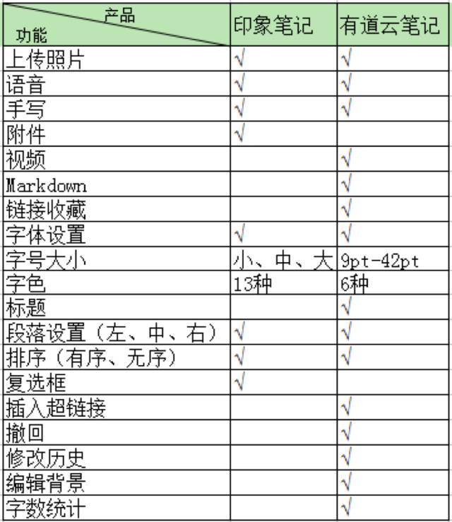 综上,记录笔记功能模块有道云笔功能比印象笔记更完善。