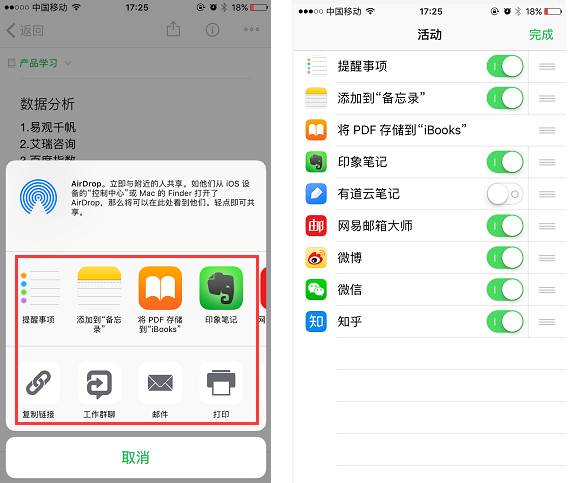 印象笔记支持分享到提醒事项、添加到备忘录、微信等社交空间,并且是否可分享到这些应用能自己编辑,同时还可以分享到工作群聊,但只能通过邮箱创建。