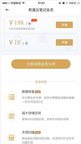有道云笔记主要是免费用户升级成会员用户,有按月收费和按年收费两种形式。