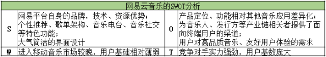 下面以QQ音乐为竞品,对网易云音乐做一个SWOT分析。