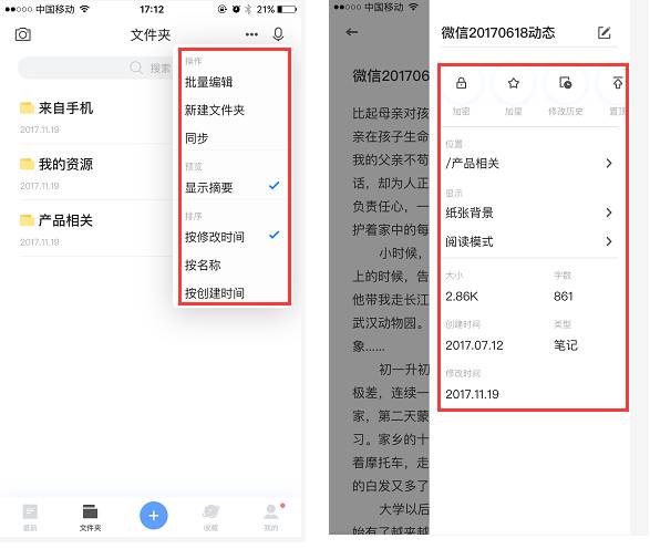 有道云笔记支持批量编辑,显示摘要,排序方式等功能。