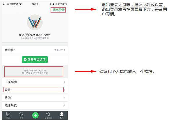 印象笔记为免费账户提供了每月60MB的上传空间,提供基础的核心需求,为升级账户提供的是深度搜索、查看笔记历史、推荐相关内容、高效协作等这类偏功能性的增值项目。