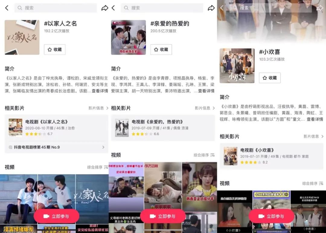 同样作为现实题材作品,《小欢喜》《亲爱的,热爱的》等热门剧集作品的二创内容,均在抖音获得了巨大的关注。
