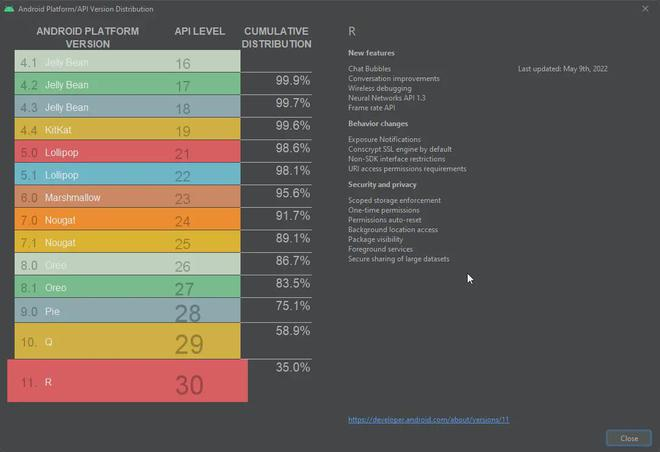 外媒认为,这个图表缺乏 Android 12 数据可能与它对 Android 开发者的预期目的有关。据介绍,Android Studio 图表不是作为你的应用程序应该针对哪些 Android API 的指南(Play Store 通过其最低 API 要求来处理这个问题),而是帮助开发者决定到底应该支持哪些版本的 Android。通过这个图表,开发者可以进一步了解不支持旧版本 Android 可能会失去的潜在客户的占比。