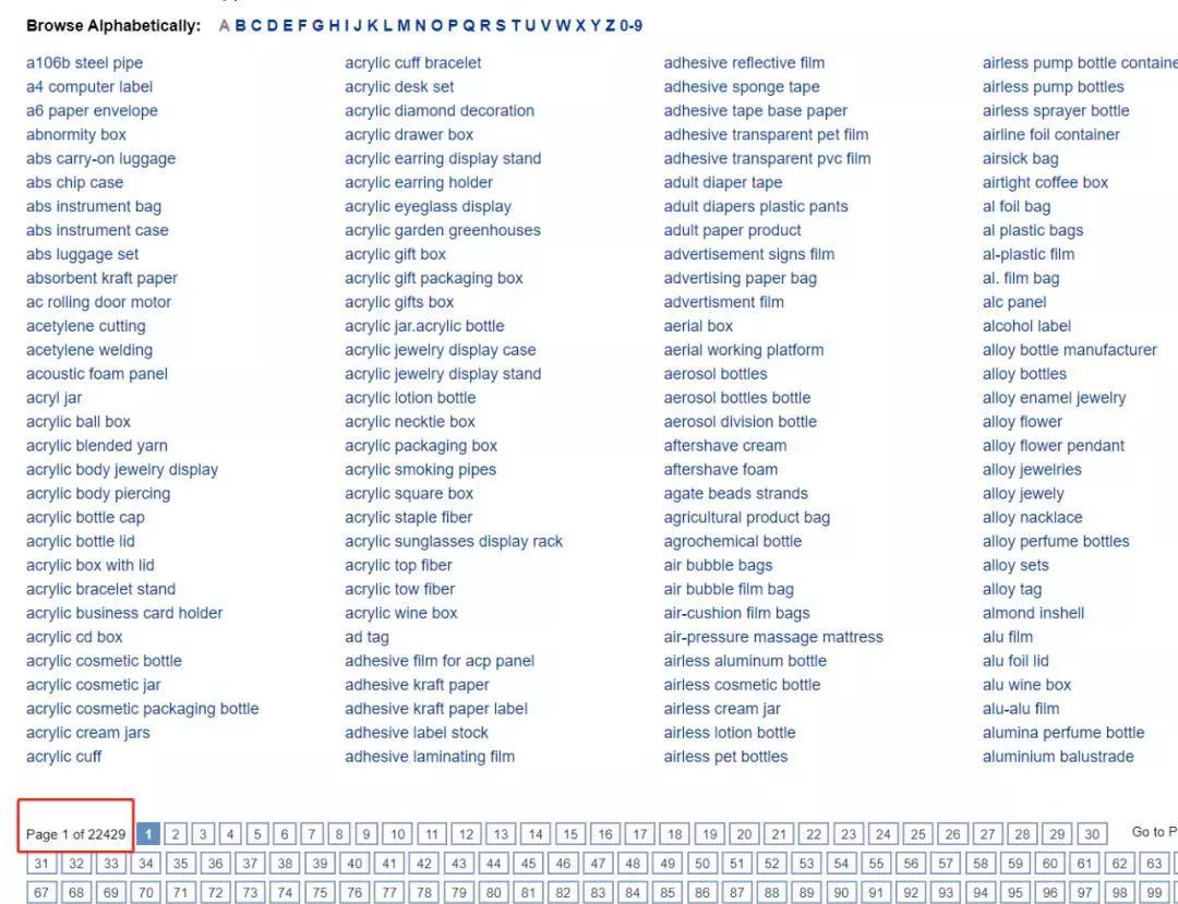 大家点一下A字母,这里都是以A开头的关键词,一页是120个词,A字母下有22429页,A到Z一共是2千多万个词。