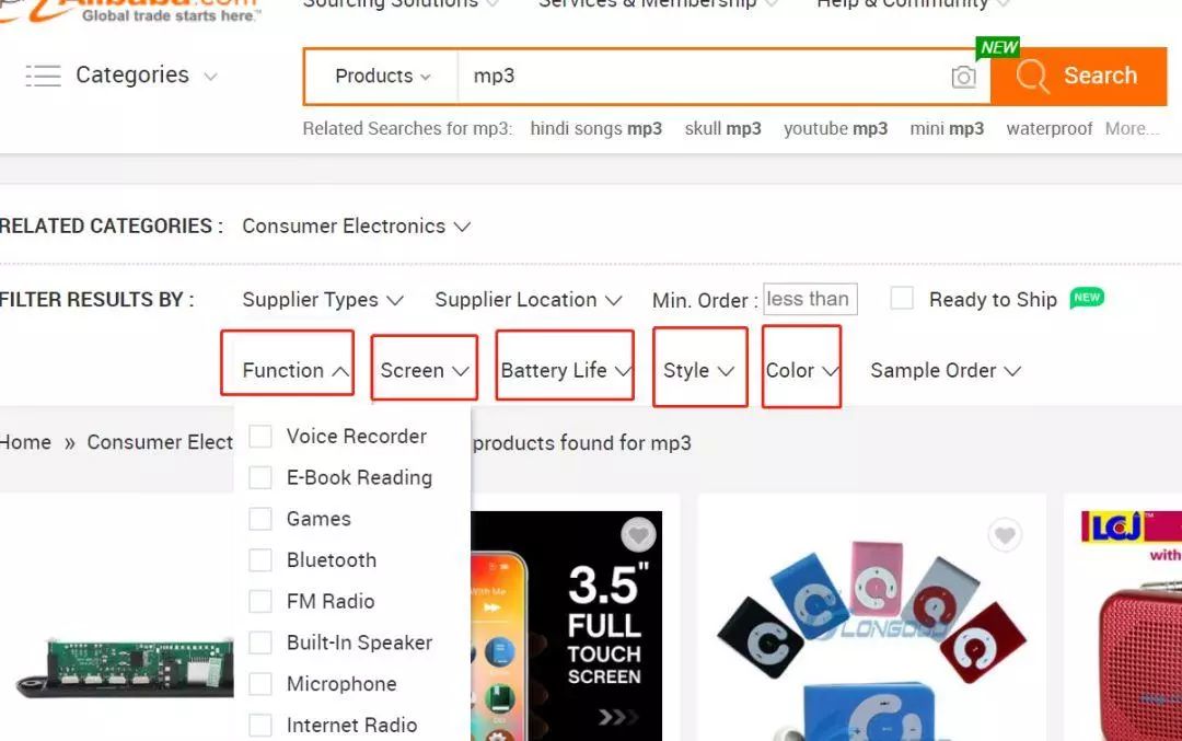 然后,再看阿里巴巴的一个页面(https://www.alibaba.com/showroom/mp3.html)。