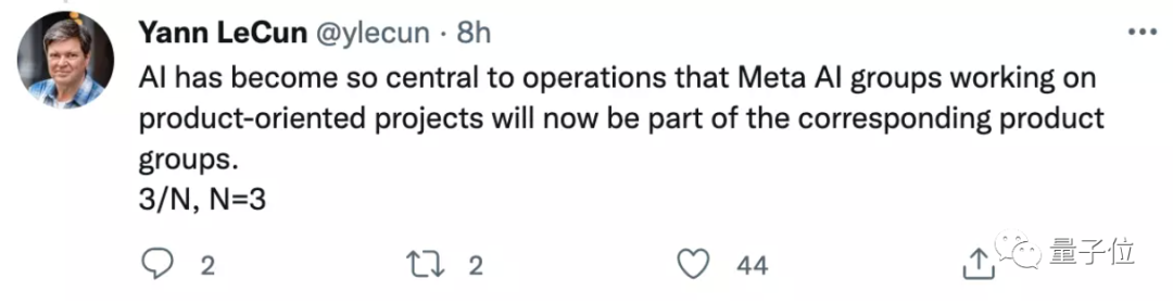 对于FAIR的命运,负责人——Meta首席科学家LeCun也发表了一系列回应。
