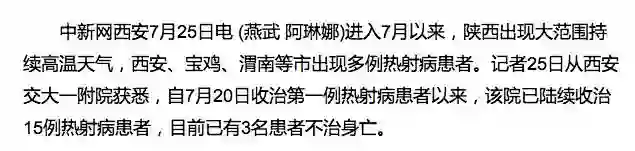 最近,热射病病例在全国多个地区频繁出现。除了陕西,江苏、浙江、湖南等多个省市也出现了多例热射病患者。图片来源:中新网