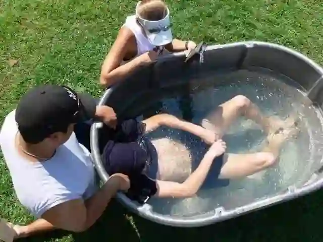 当病人出现热射病症状的时候,将病人浸泡在浴缸的凉水里,可以帮助他迅速降温。图片来源:answers.com