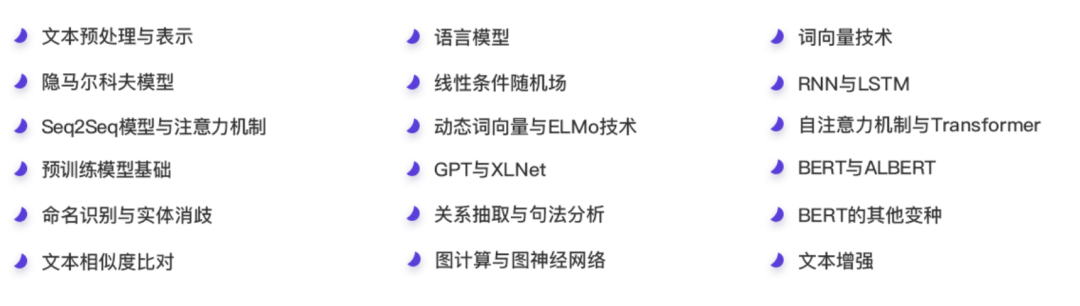 为满足不同基础的学员可以循序渐进的系统化学习,本课程可以根据学员自身的知识储备条件,选择从哪个阶段开始学习。完整的课程安排可以满足没有编程经验和算法基础的学员通过5-6个月的高强度学习入门NLP技术。
