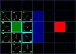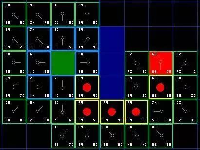 其基本思想是以起点为中心,其周围紧邻的8个点都通过指针指向它,在其周围点内选择最佳路径点并以它为中心点将其还未建立指针联系的周围点(可行的,这在后文中解释)通过指针指向它,并选择最佳路径点再以此点为中心寻路直到寻找到点的周围点中有目标点,这样寻找的路径就通过指针一一连接起来了,最后通过输出这些点就是寻找的路径了。