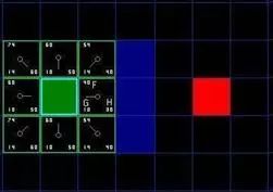 其中H表示从路径所在的当前点到终点的移动路径耗费,计算方法为当前点到目的点之间水平和垂直的方格的数量总和,然后把结果乘以10。