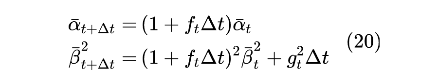 时,结果就是原论文中的 VP-SDE(Variance Preserving SDE)。