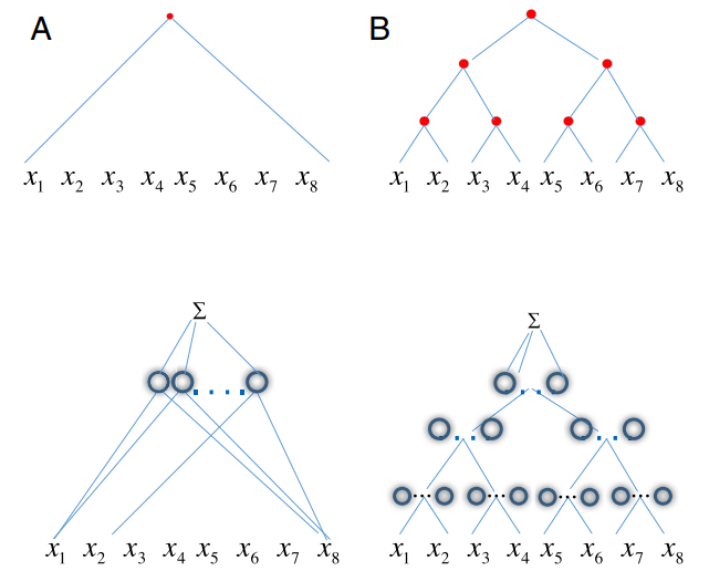 如下图 1 所示,网络中的每个节点对应于要近似的函数的图中的节点。结果发现,深度网络具有比浅层网络更好的近似能力。