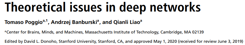 论文作者 Tomaso Poggio、Andrzej Banburski 和 Quianli Liao 来自 MIT 大脑、心智和机器中心(Center for Brains, Minds and Machines, CBMM),其中 Tomaso Poggio 是 MIT 计算神经学科「大家」,也是深度学习理论研究的先锋。他们创建了一种新的理论来解释深度网络的运行原因,并于 2020 年 6 月 9 日在 PNAS(美国国家科学院院刊)上发表了他们的研究成果。