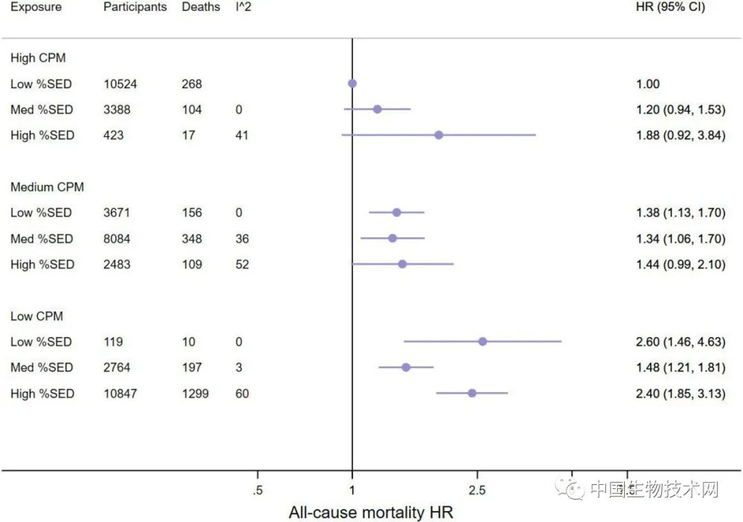 分析发现,与对照组相比(最高运动量/最少久坐时间),