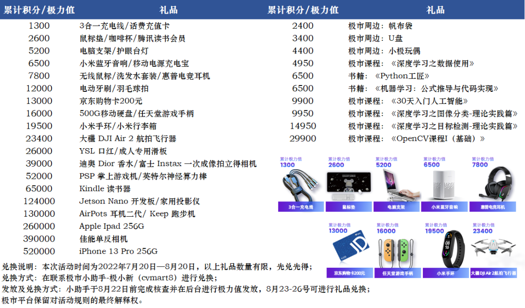 在极市,极力值不仅可是算法开发过程的算力资源,还可作为极市平台独特流通的货币兑换礼品。