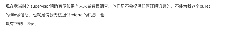 背景调查中关于你之前的经历其实是非常重要的一个部分,所以一旦你的旧supervisor掉链子,就很可能带来非常严重的情况。