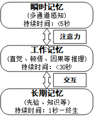 图1 瞬时记忆、工作记忆和长期记忆三种记忆体及其联系