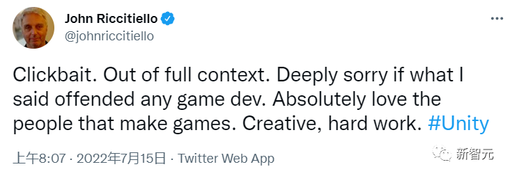 Unity CEO尚未置评