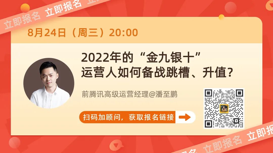 别担心,我们懂你!下周三晚,特邀前腾讯高级运营经理@潘至鹏老师,为大家开展一期关于运营人跳槽的直播!