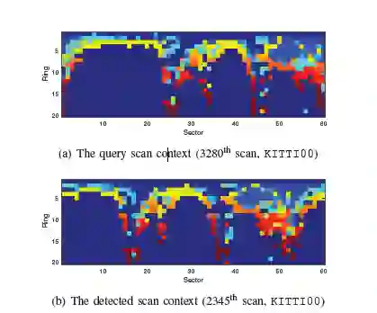 与先前提出的方法不同,本文所提出的方法直接记录来自传感器的可见空间的3D结构,并且不依赖于直方图或先前的训练。另外,该方法提出使用相似性得分来计算两个扫描环境之间的距离,并且还提出用于有效地检测回环的两阶段搜索算法。