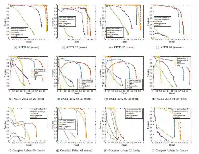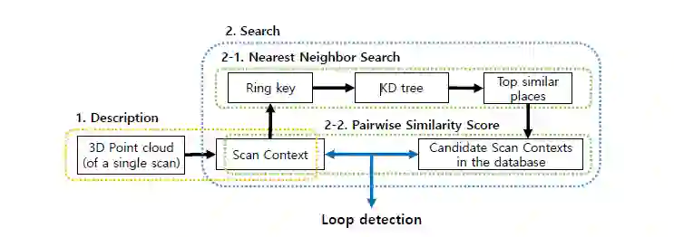 与使用点云的现有全局描述符相比,扫描上下文在各种数据集中显示出更高的环路检测性能。