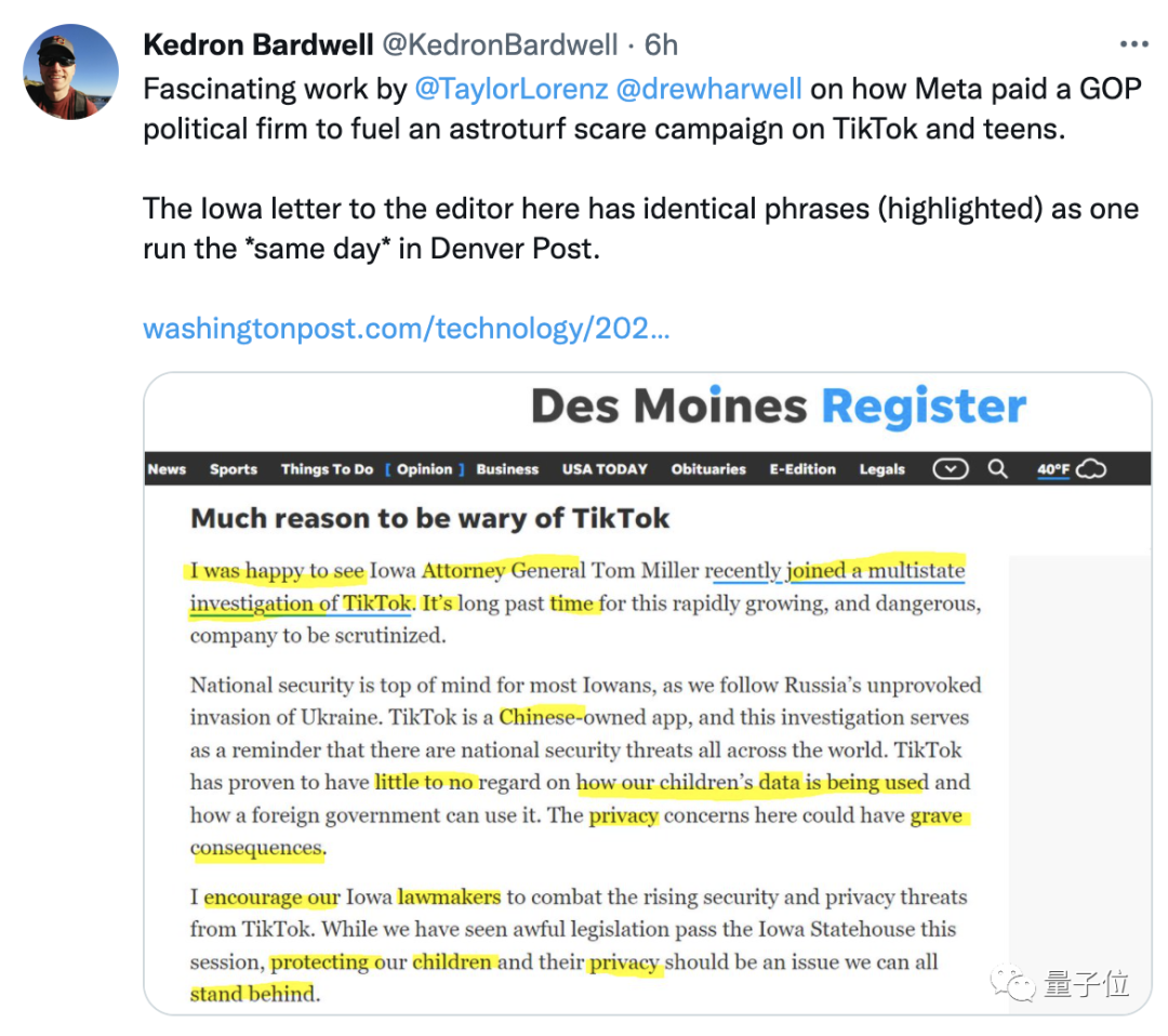 具体的则是通过各类渠道扩大对TikTok的负面报道,主要是两点: