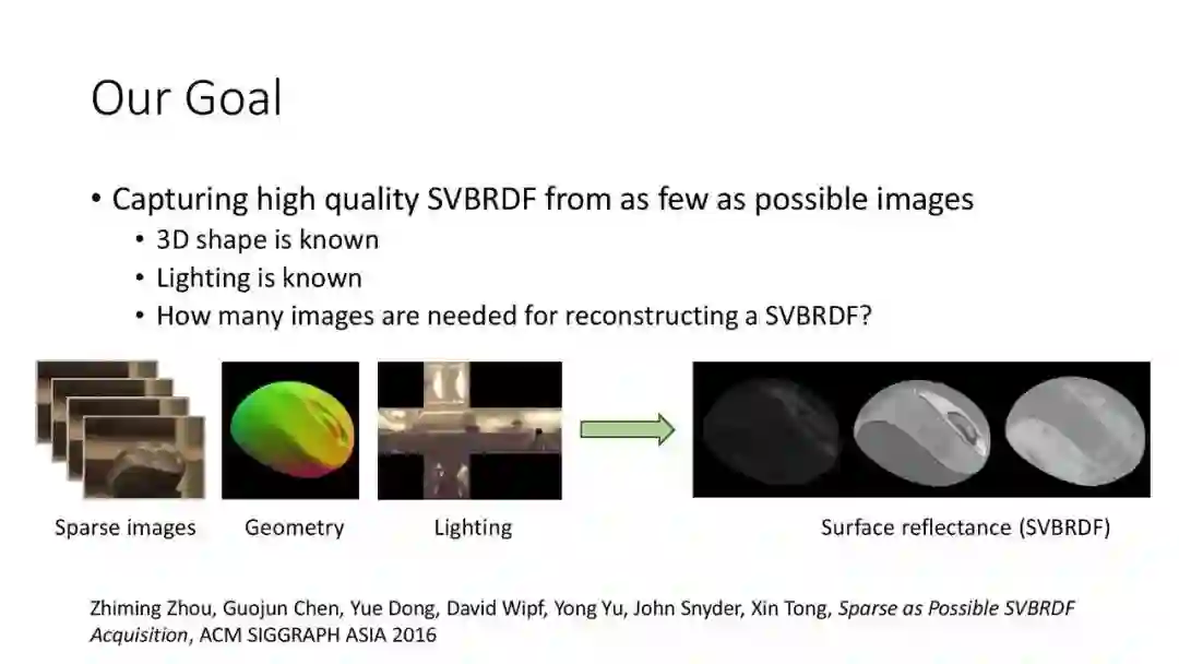 1. Zhiming Zhou, Guojun Chen, Yue Dong, David Wipf, Yong Yu, John Snyder, Xin Tong, Sparse as Possible SVBRDF Acquisition, ACM SIGGRAPH ASIA 2016