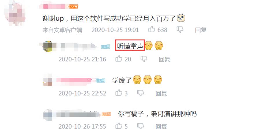 更有网友提到了用这个软件写成功学已经月入百万了,听懂掌声