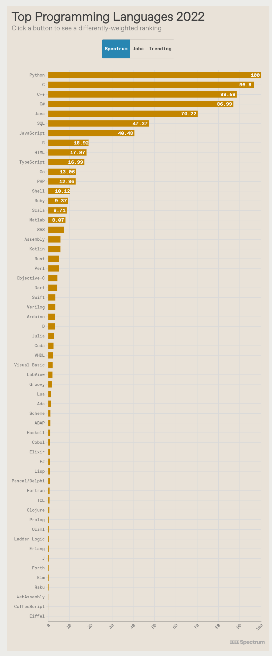 Python 霸榜,学 SQL 工作更吃香,2022 IEEE 编程语言榜单发布!