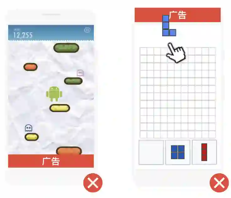 广告不得与游戏画面重叠,这样会影响用户体验