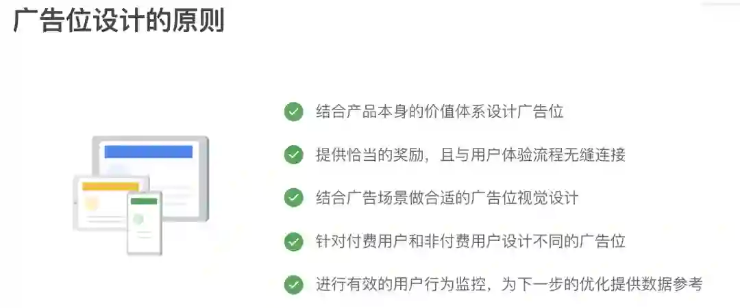为了让广告收益最大化,AdMob 能够提供全部四种广告格式可以让广告主根据自己的展示位的需求进行自主选择,包括: 横幅广告、插页广告、原生广告、激励视频广告。