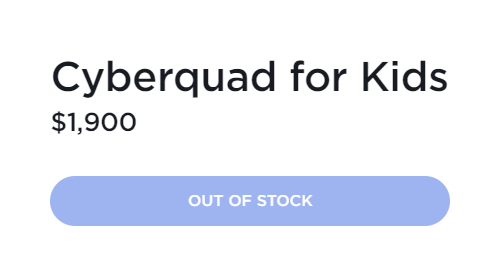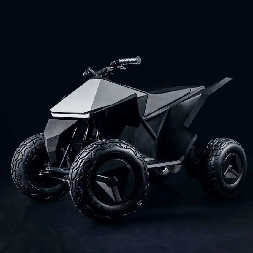 2019年,特斯拉重磅发布电动皮卡Cybertruck,这款车赛博朋克风拉满,其颠覆性的造型被誉为「开往火星的车」,发布一周即收到了近15万订单。当时,与这款炫酷皮卡一起亮相的还有一款造型小巧的全地形越野车(ATV),名为Cyberquad。在发布会现场,驾驶员还直接把车开进了Cybertruck的挂斗里。Cybertruck负责显酷,Cyberquad负责越野,不愧为一对好伴侣。不过,自两年前亮相以来,特斯拉一直没有透露Cyberquad何时正式推出。圣诞将至之际,这款备受期待的车终于有了新消息,不过这次是一款「童车」。昨天,特斯拉在其美国官网商城上架了儿童款的Cyberquad,并开启预售,作为给小朋友们的「硬核」圣诞礼物!这是一款儿童版的Cyberquad全电动ATV,目前,美国特斯拉官网已经给出了这款车的性能参数和外观展示,售价为1900美元。官网数据显示,这款车最大负载为150磅,推荐年龄为8岁以上儿童。虽然是给孩子的玩具,但外形仍然保持与特斯拉皮卡一脉相承的炫酷风格。这款车配置了钢框架、软垫座椅和带后盘式制动的可调节悬架,甚至还配有 LED 灯条,进一步体现了特斯拉一贯的赛博朋克美学。性能方面,这款车有3挡速度设置,最高时速档位为16公里/小时,此外还有8公里/小时,以及倒车档,8公里/小时。这个速度,上路作为交通工具可能还不大够格,但作为一款8岁孩子的高级玩具,无疑是足够高大上了。电动车的电池续航从来都是重点。特斯拉表示,这款儿童版Cyberquad电池续航不低于24公里,具体情况可能随驾驶者体重、行驶路况地形、以及行驶速度有所变化。电池充电时间为5小时充满。 不过,目前这款儿童版Cyberquad只支持美国官网购买,只在美国国内配送。