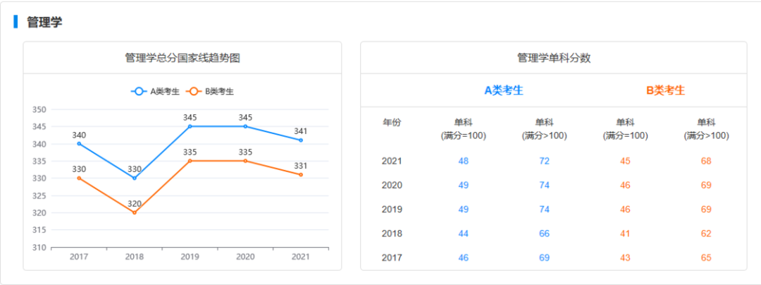 管理学研究生入学考试国家线变化趋势(来源: